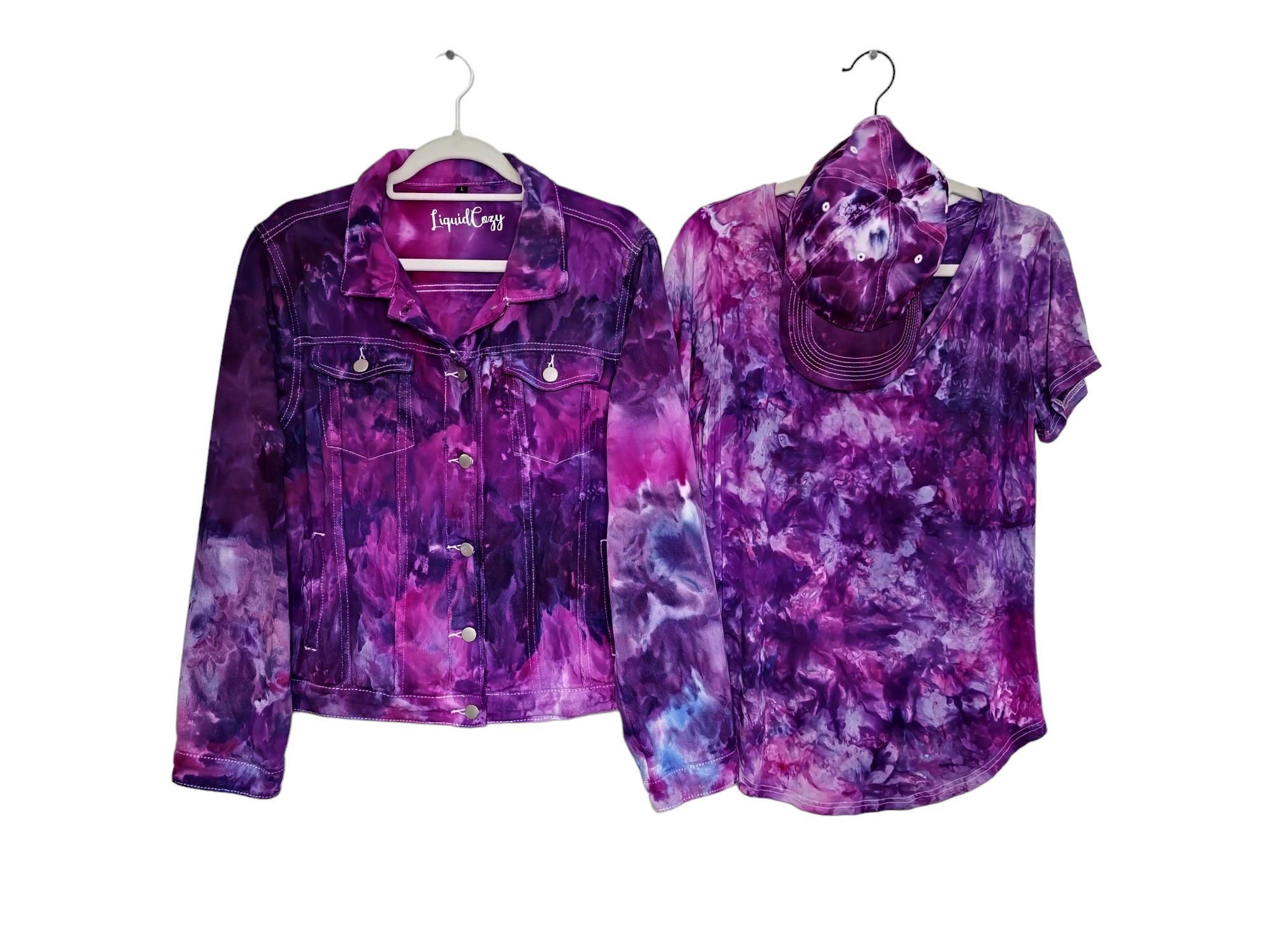 Womens Cropped Denim Jacket Hand Dyed, Tie Dye Denim Jacket - Liquid Earth
