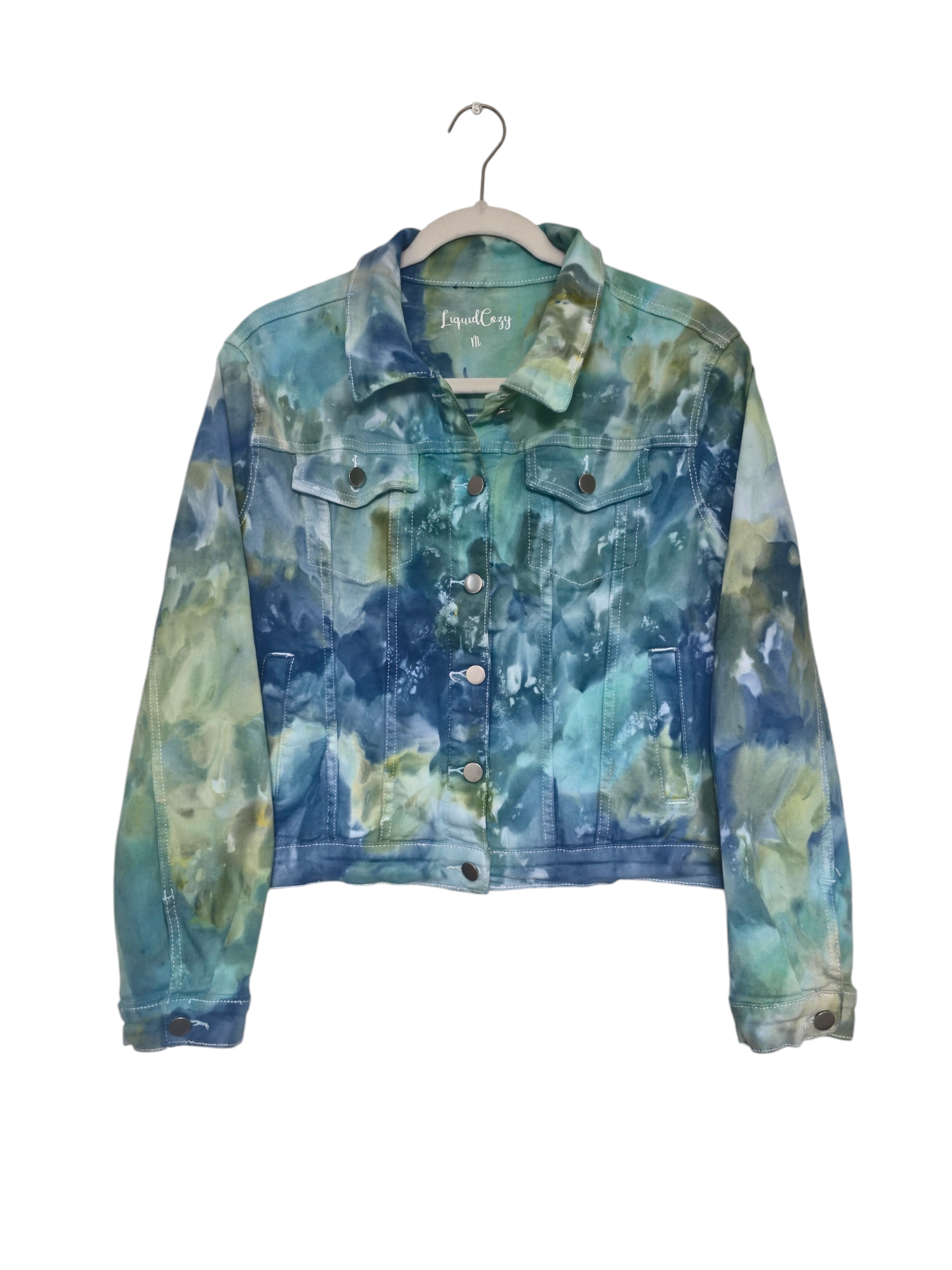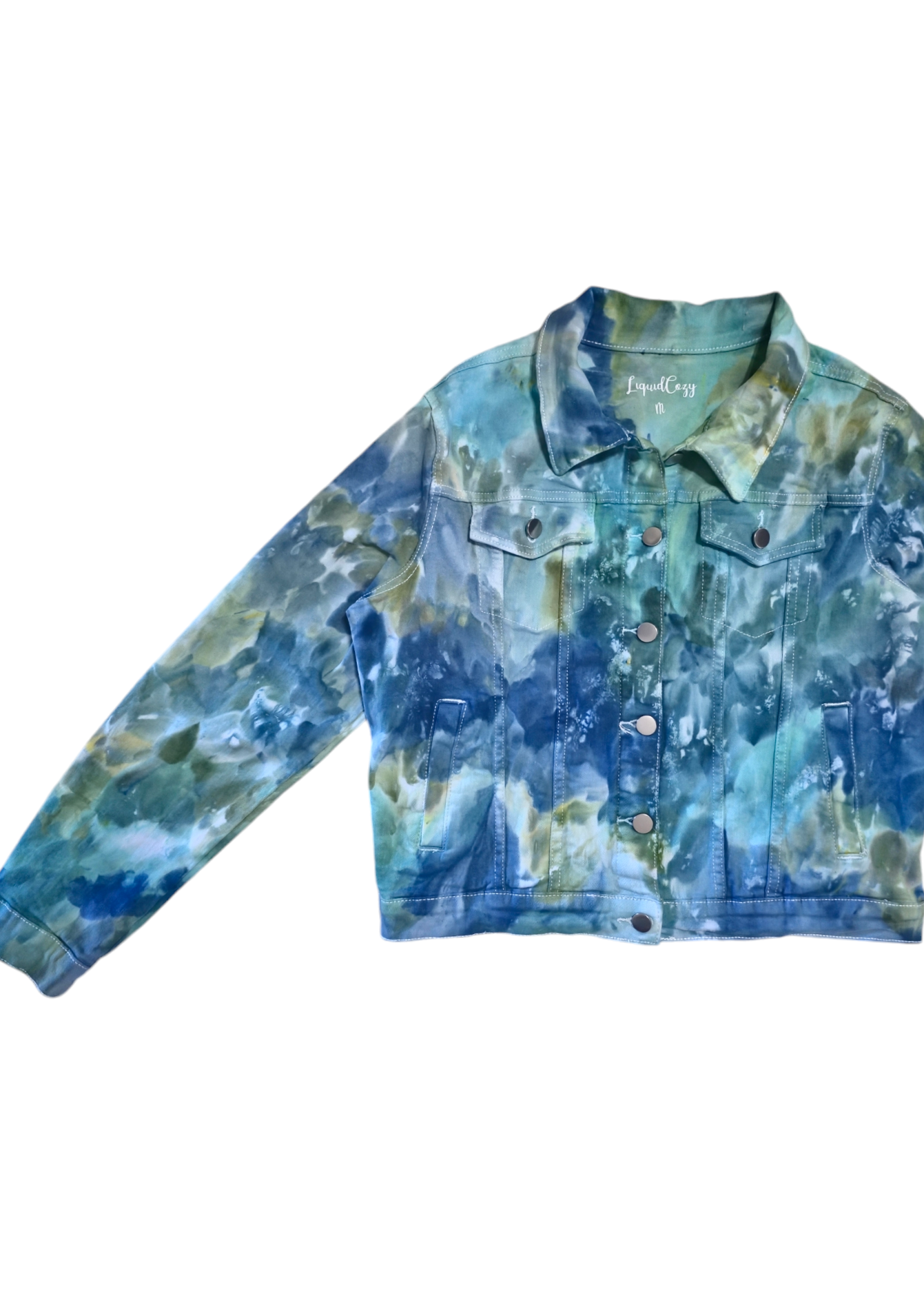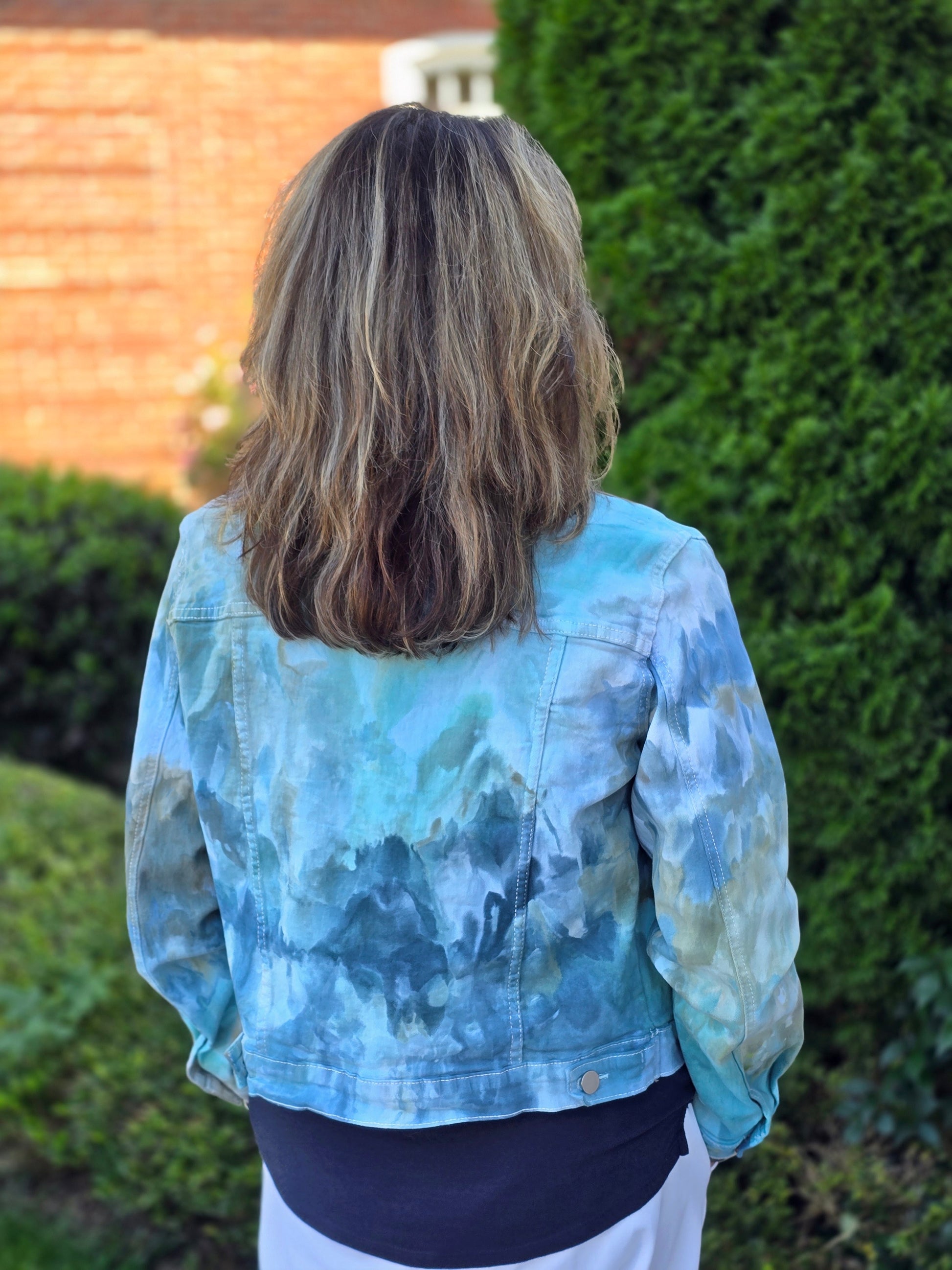 Womens Denim Jacket Hand Dyed, Tie Dye Denim Jacket in Liquid Turquoise