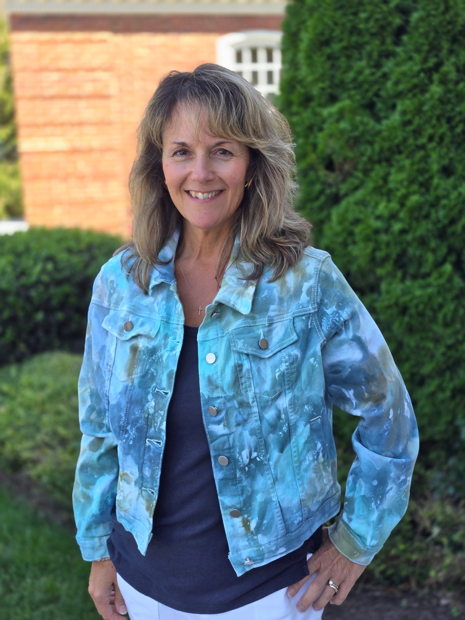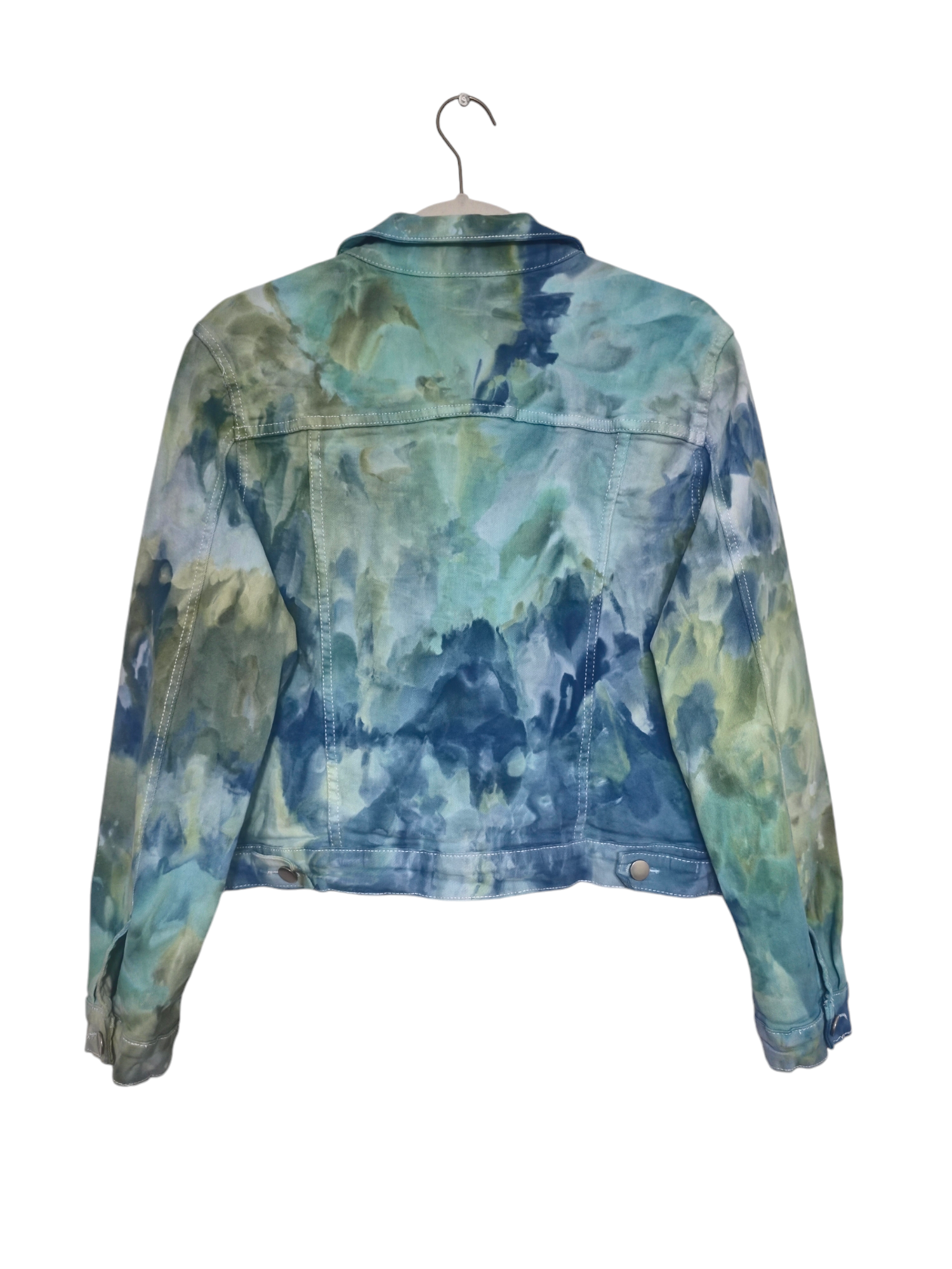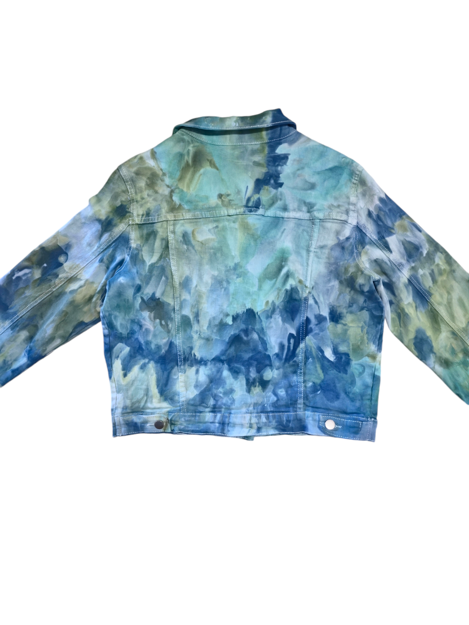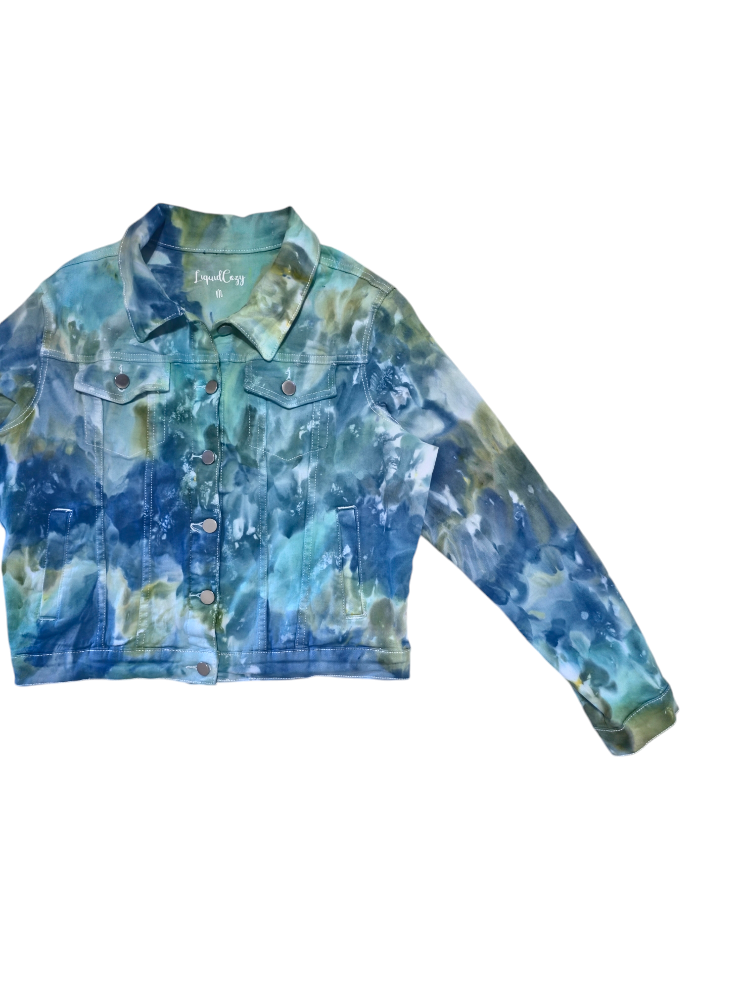 Womens Denim Jacket Hand Dyed, Tie Dye Denim Jacket in Liquid Turquoise